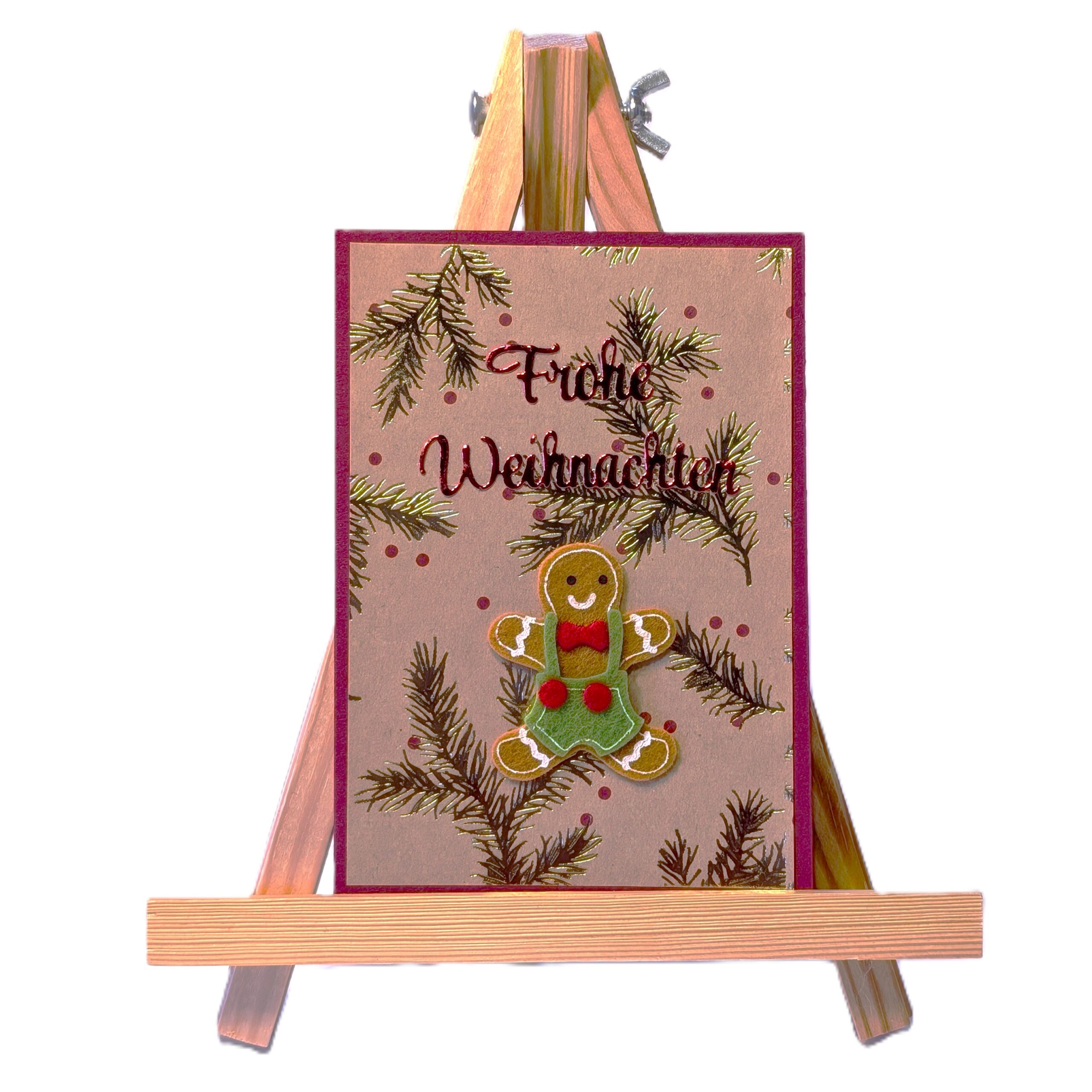 Weihnachtskartemit handgezeichnetem grünen Weihnachtsbaum mit goldenen Kugeln, Aquarell – Doppelkarte A6