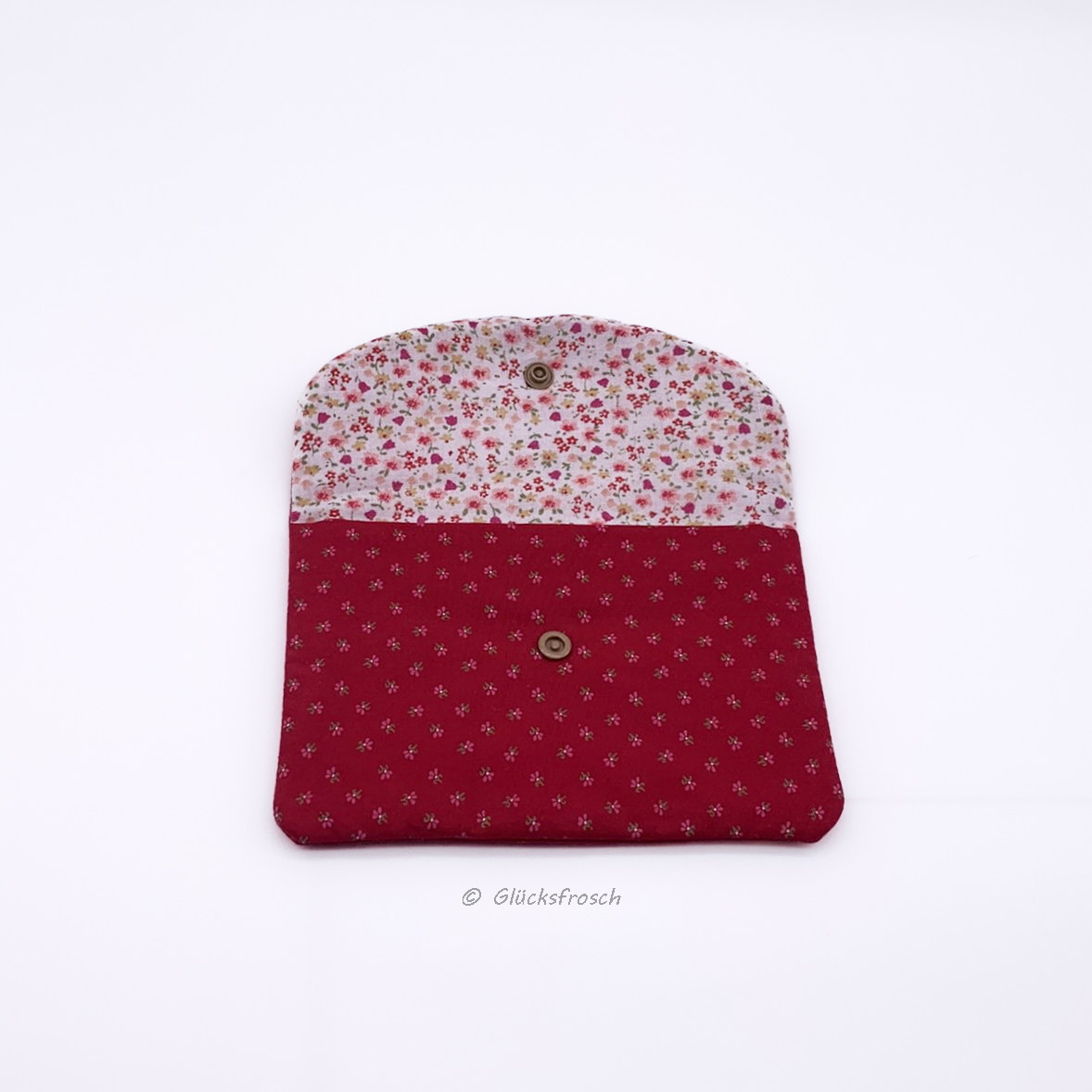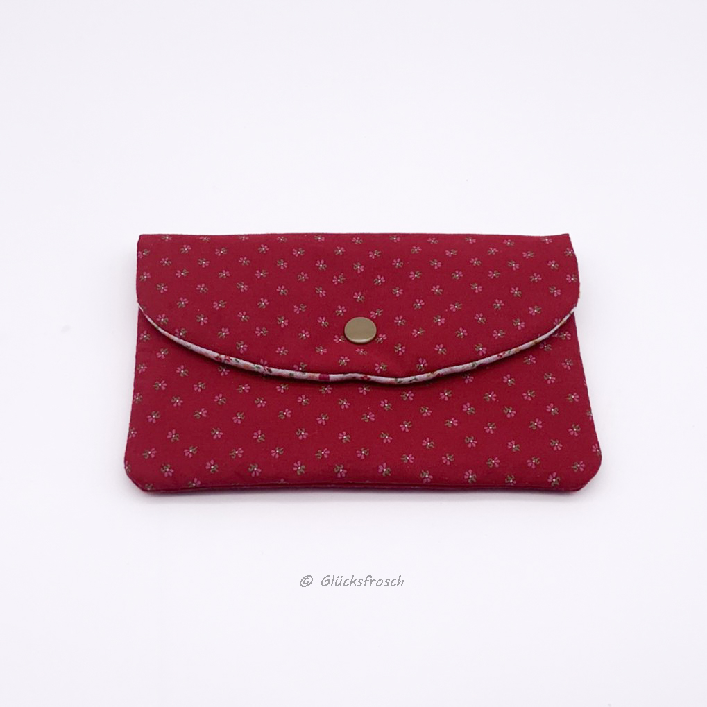 Beautybag, Kosmetiktasche für Kleinkram, Briefumschlag, aus rotem Dindlstoff mit Blümchen